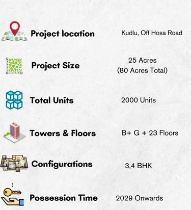 The massive residential enclave, Assetz Codename Micropolis, is spread across 80 acres of sprawling prime real estate and features the very best in Assetz Group’s premium & luxury segment. The project offers spacious 3BHK and 4BHK apartments with luxurious features.