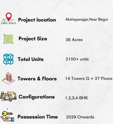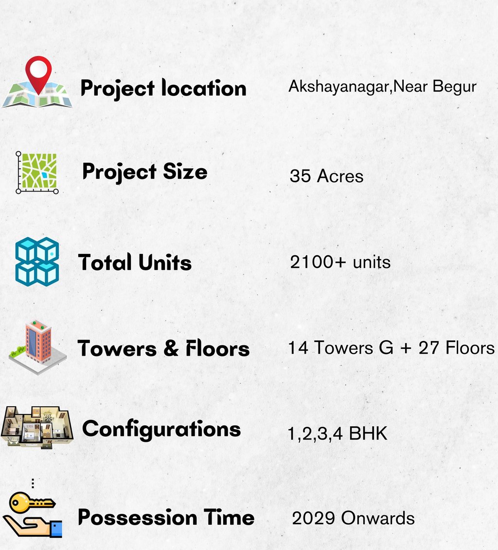 Prestige Southern Star is a premium residential project developed by the renowned Prestige Group, located in Begur Road, Bangalore. This project offers a perfect blend of luxury, comfort, and convenience, catering to modern urban lifestyles.