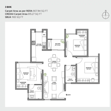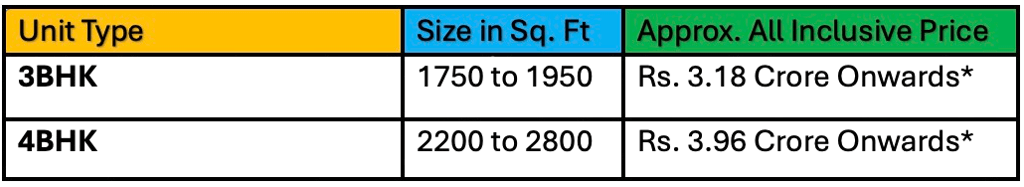 Configuration : 3 BHK & 4 BHK Apartments